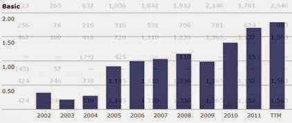 Ø 公司EPS走勢圖如下: 看營業收入不具參考意義